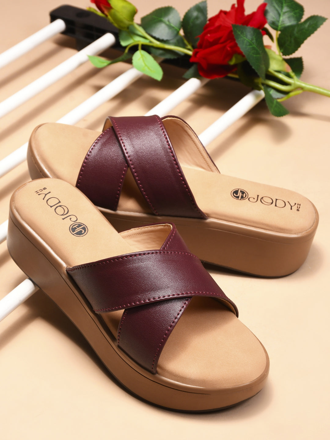 Textured and patterend outsole, has a wedge heel